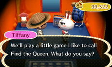 - Find the Queen by snooty villagers